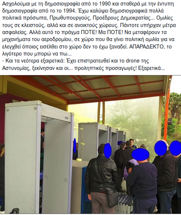 Να μεταφέρουν τα μηχανήματα του αεροδρομίου, σε χώρο που θα γίνει πολιτική ομιλία για να ελεγχθεί όποιος εισέλθει στο χώρο δεν το έχω ξαναδεί. ΑΠΑΡΑΔΕΚΤΟ, το λιγότερο που μπορώ να πω…