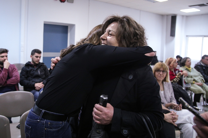 Λίγο αργότερα έφτασε στον Κορυδαλλό και η μητέρα του Παύλου Φύσσα, Μάγδα, με την οποία η Περιστέρα Μπαζιάνα χαιρετήθηκε και συνομίλησε.