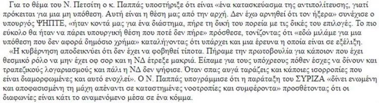 Αλαλούμ με τη δήλωση του Ν.Παππά για τον Μ.Πετσίτη-Η λάθος απομαγνητοφώνηση του ΑΠΕ και το διορθωμένο τηλεγράφημα