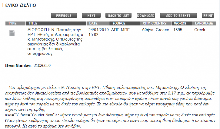 Με καθυστέρηση τουλάχιστον δεκαπέντε ωρών φρόντισε το Αθηναϊκό Πρακτορείο Ειδήσεων να αποκαταστήσει την αλήθεια σχετικά με τις δηλώσεις του Νίκου Παππά στην ΕΡΤ, το βράδυ της Τρίτης.