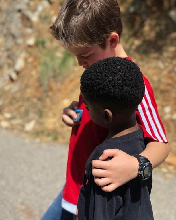 «Ο Γιώργος ο εγγονός μου, με τον φίλο του τον Άγγελο! Στο Καρπενήσι εξηγώντας το πραγματικό νόημα της Αναστάσης! Χρόνια πολλά!», σχολίασε κάτω από τη φωτογραφία που δείχνει τον Γιώργο να κρατά αγκαλιά τον νέο του φίλο.