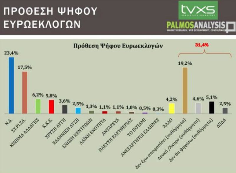 Συνολικά, η αδιευκρίνιστη ψήφος κινείται στο 31,4%.