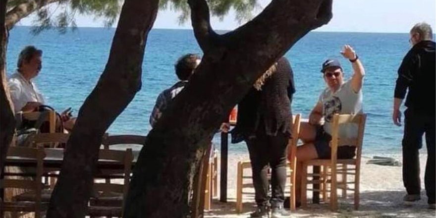 Στη φωτογραφία, που δημοσιεύει το protothema.gr ο πρωθυπουργός φαίνεται χαλαρός με σορτσάκι, κοντομάνικο, γυαλιά ηλίου και καπελάκι. Ο Αλέξης Τσίπρας, κάνει νόημα σε κάποιον, ενώ μπροστά του βρίσκεται προφανώς η σερβιτόρα του καταστήματος, πίσω του ένας ακόμη σερβιτόρος, ενώ στην άλλη άκρη του τραπεζιού, διακρίνεται ο Παύλος Πολάκης.