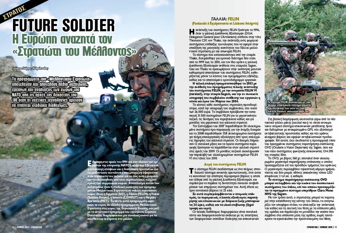 Tα προγράμματα του «Μελλοντικού Στρατιώτη» αποτέλεσαν και αποτελούν πεδίο συζήτησης, ερευνών και ανάπτυξης των χωρών του ΝΑΤΟ από τις αρχές της δεκαετίας του ‘90 όταν οι σχετικές τεχνολογίες άρχισαν να γίνονται σταδιακά διαθέσιμες.