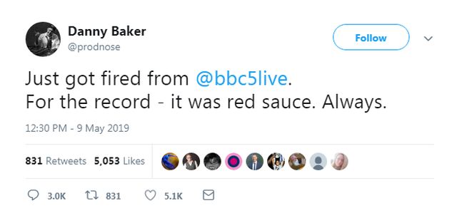 «Μόλις απολύθηκα», ανακοίνωσε μέσω Twitter ο ραδιοφωνικός παραγωγός Ντάνι Μπέικερ.