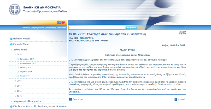 Σε επίσημο δελτίο Τύπου του υπουργείου Προστασίας του Πολίτη, η Γεροβασίλη απαντά στον… λαϊκισμό Μητσοτάκη, λέγοντας ότι ο πρόεδρος της ΝΔ, «μετεωρίζεται από την λασπολογία στην τρομολαγνεία και τον απύθμενο λαϊκισμό».