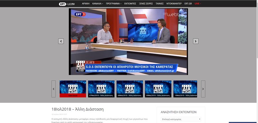 Αυτό το μήνυμα έβλεπαν στις οθόνες τους όσοι επιχειρούσαν να δουν αρχειακό υλικό της εκπομπής Στα Άκρα ως τις 12.30 σήμερα το μεσημέρι, ενώ αντίστοιχα έβλεπαν κανονικά εκπομπές της Άλλης Διάστασης με τον Κώστα Αρβανίτη, την ίδια ώρα: