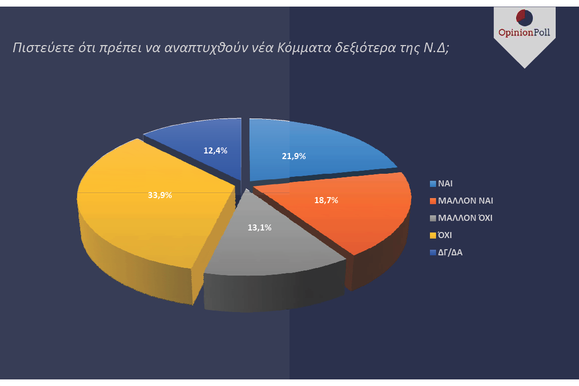 Το ενδιαφέρον σημείο είναι η εμφάνιση της «Νέας Δεξιάς» του Φαήλου Κρανιδιώτη για πρώτη φορά σε δημοσκόπηση, ενώ συνολικά τα κόμματα δεξιά της ΝΔ μαζί με την αξιωματική αντιπολίτευση συγκεντρώνουν ποσοστό άνω του 50%.