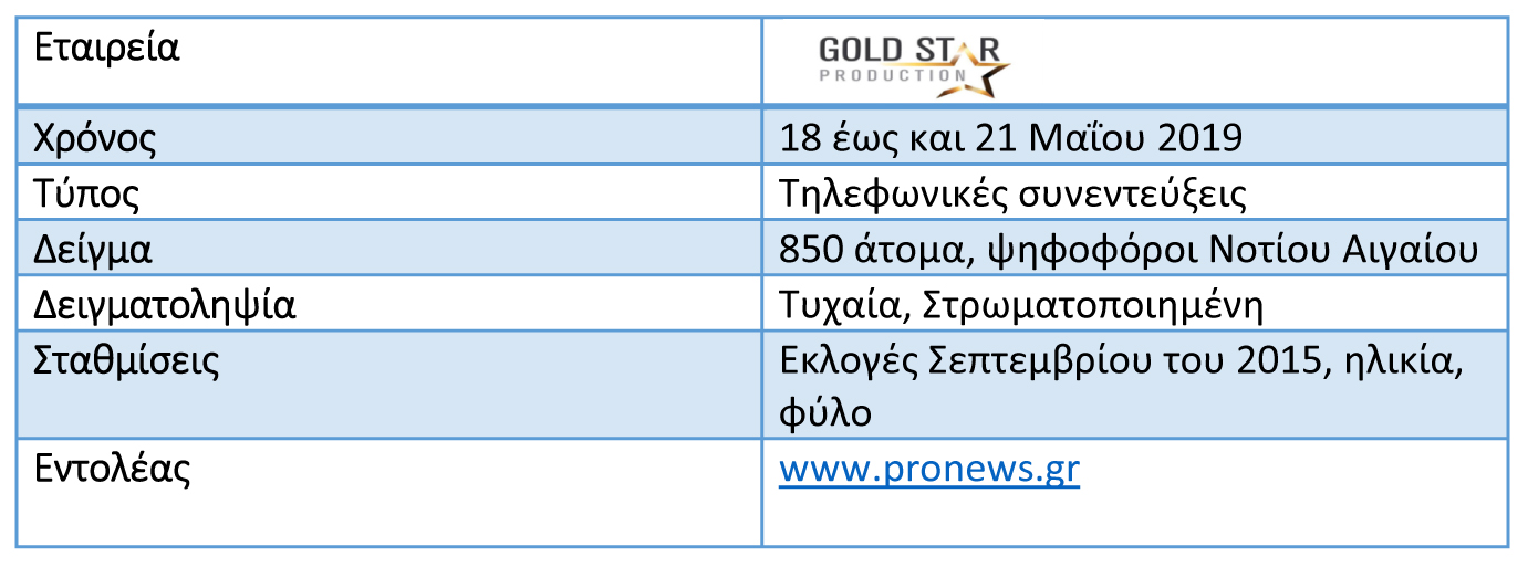 Η δημοσκόπησης διενεργήθηκε από την εταιρεία “GOLD STAR” για λογαριασμό του pronews.gr