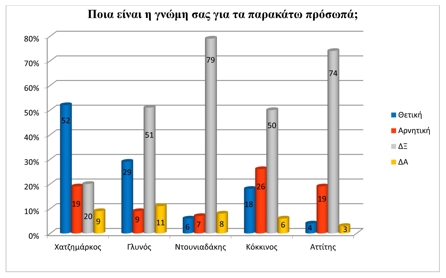 Επιπλέον, ένα ακόμη σημαντικό στοιχείο είναι ότι οι ψηφοφόροι δεν γνωρίζουν τους συνυποψηφίους του Γιώργου Χατζημάρκου ώστε να είναι σε θέση να δικαιολογήσουν την προτίμησή τους.