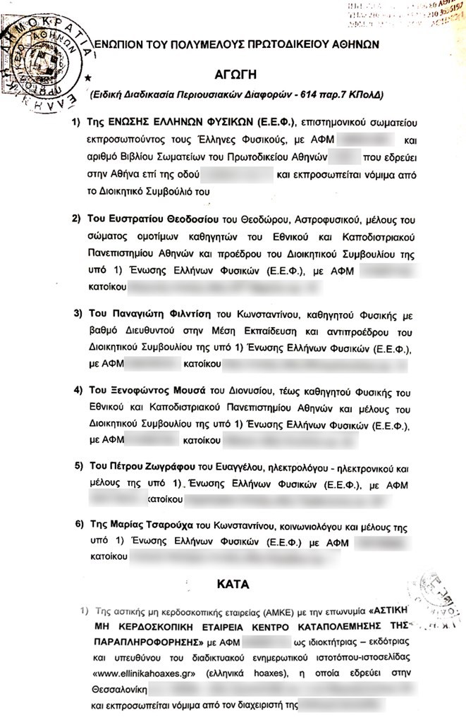 Στην αντεπίθεση περνάει η Ένωση Ελλήνων Φυσικών και η ερευνητική ομάδα του Πέτρου Ζωγράφου, έπειτα από τη δημοσίευση συκοφαντικών, όπως αναφέρουν, άρθρων εις βάρος τους, από την ιστοσελίδα «Ελληνικά Hoaxes».