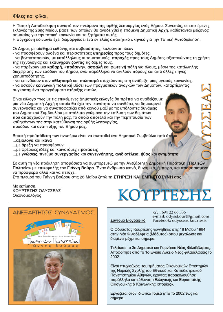 Υποψήφιος δημοτικός σύμβουλος και ο οικονομολόγος Οδυσσέας Κουρτέσης, γέννημα θρέμμα Φιλαδελφιώτης