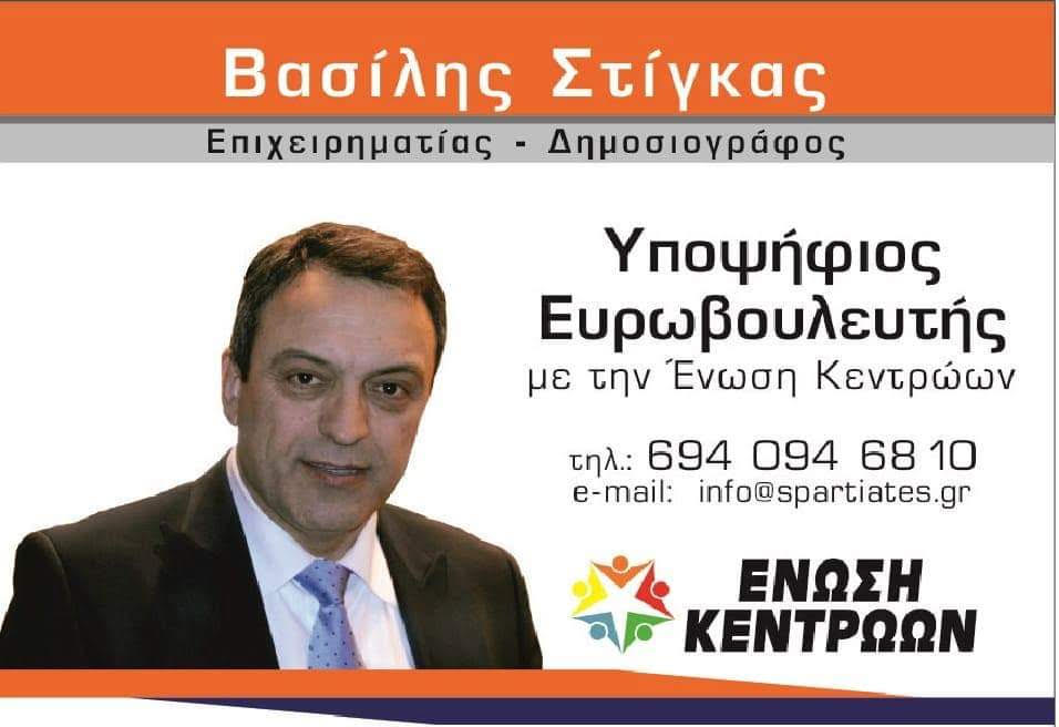 Ο υποψήφιος ευρωβουλευτής της Ένωσης Κεντρώων Βασίλης Στίγκας στηρίζει Τάσο Γκουριώτη και «Η Γλυφάδα Μπροστά»