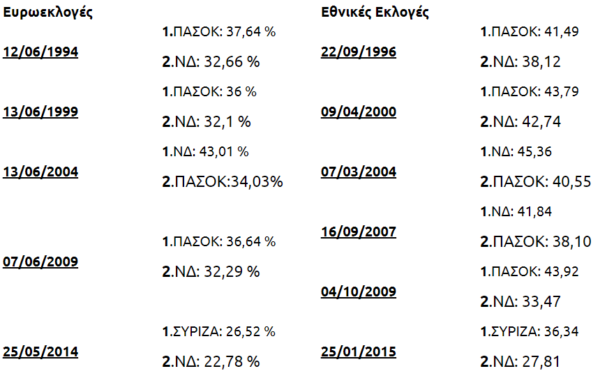 Αναλυτικά τα αποτελέσματα σε ευρωεκλογές και εθνικές εκλογές από το 1994