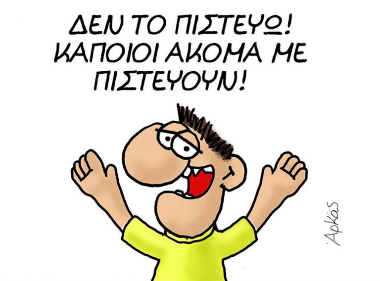 Λίγο νωρίτερα, ο Αρκάς σε μία νέα ιστορία από τα «παιδικά χρόνια» ο μικρός πρωθυπουργός αναφωνεί ότι υπάρχει ακόμη κόσμος που τον πιστεύει, κάτι για το οποίο φαίνεται να απορεί και ο ίδιος ακόμη.