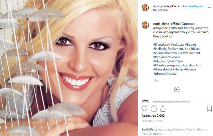 «Όμορφες αναμνήσεις από την πρώτη φορά που έβαλα υποψηφιότητα για το Ελληνικό Κοινοβούλιο» ήταν το σχόλιο που συνόδευσε τη φωτογραφία στο λογαριασμό της στο Instagram.