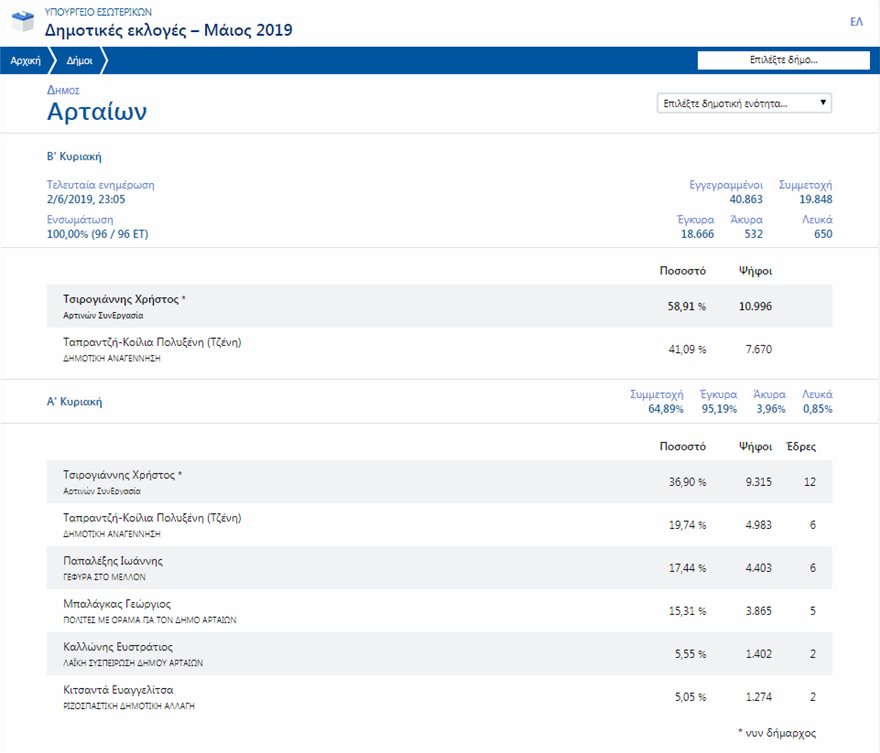 Δείτε τα αποτελέσματα του δεύτερου γύρου των δημοτικών εκλογών στον δήμο Αρταίων: