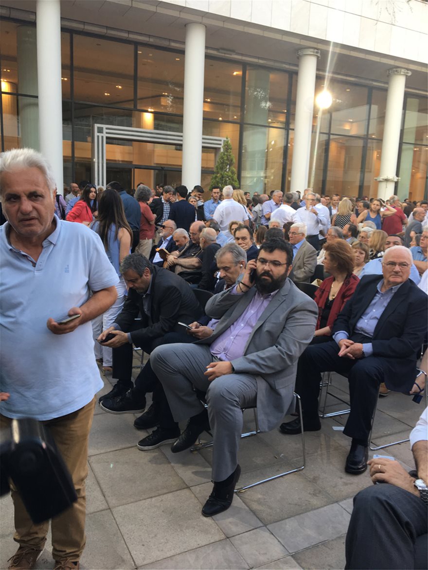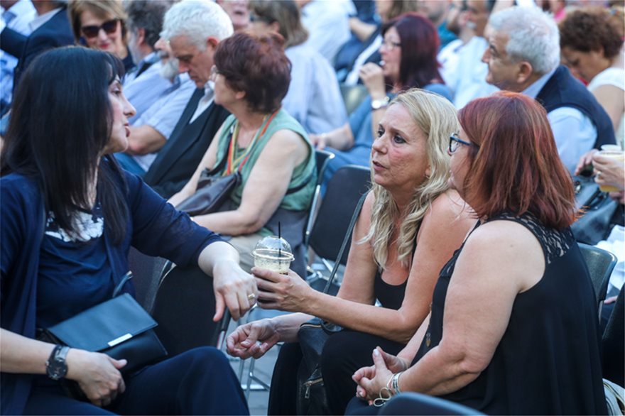 Αγκαλιές, χαμόγελα, πηγαδάκια που άλλοτε δεν θα περίμενε κανείς ότι θα μπορούσαν να υπάρξουν κυριάρχησαν στο αίθριο του Μεγάρου Μουσικής πριν από την έναρξη της ομιλίας του Αλέξη Τσίπρα.