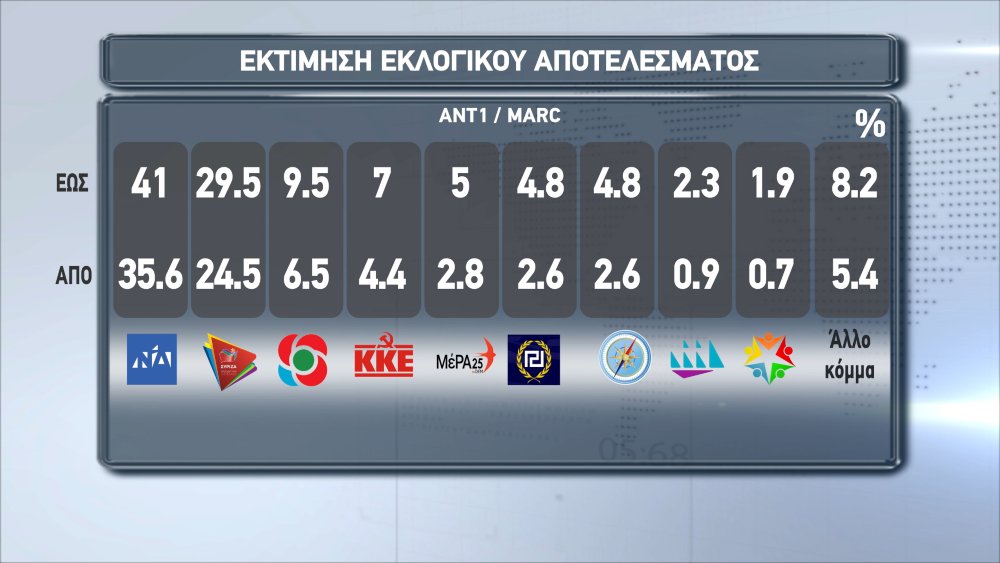 Σύμφωνα με την δημοσκόπηση της Marc, στην Βουλή θα μπουν 7 κόμματα, καταλαμβάνοντας έδρες ως εξής: