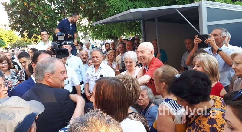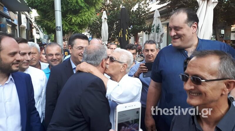 Ο πρώην πρωθυπουργός έτυχε θερμής υποδοχής στην Καλαμαριά, βγήκε δεκάδες φωτογραφίες ενώ δεν ήταν λίγοι εκείνοι που έσπευσαν να τον αγκαλιάσουν και να τον φιλήσουν.