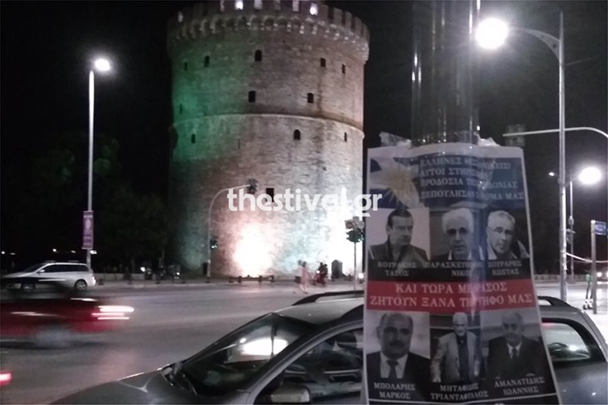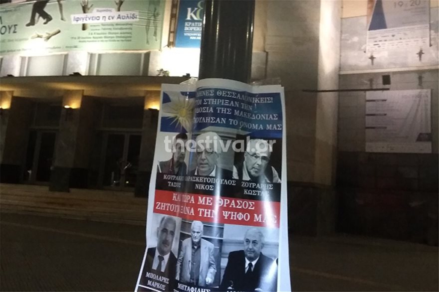 Στο μήνυμα της αφίσας αναφέρεται: «Έλληνες Θεσσαλονικείς! Αυτοί στήριξαν την προδοσία της Μακεδονίας. Ξεπούλησαν το όνομά μας και τώρα με θράσος ζητούν ξανά την ψήφο μας. Μαύρο».