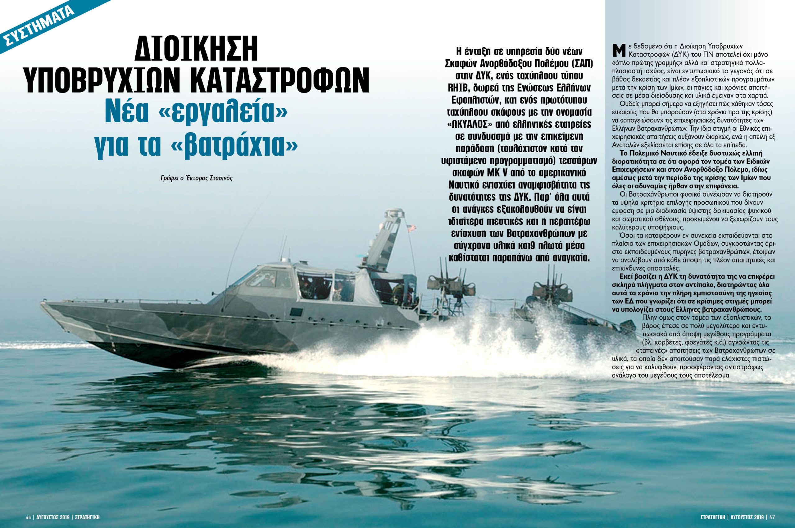 Η ένταξη σε υπηρεσία δύο νέων Σκαφών Ανορθόδοξου Πολέμου (ΣΑΠ) στην ΔΥΚ, ενός ταχύπλοου τύπου RHIB, δωρεά της Ενώσεως Ελλήνων Εφοπλιστών, και ενός πρωτότυπου ταχύπλοου σκάφους με την ονομασία «ΩΚΥΑΛΟΣ» από ελληνικές εταιρείες σε συνδυασμό με την επικείμενη παράδοση (τουλάχιστον κατά τον υφιστάμενο προγραμματισμό) τεσσάρων σκαφών MK V από το αμερικανικό Ναυτικό ενισχύει αναμφισβήτητα τις δυνατότητες της ΔΥΚ.