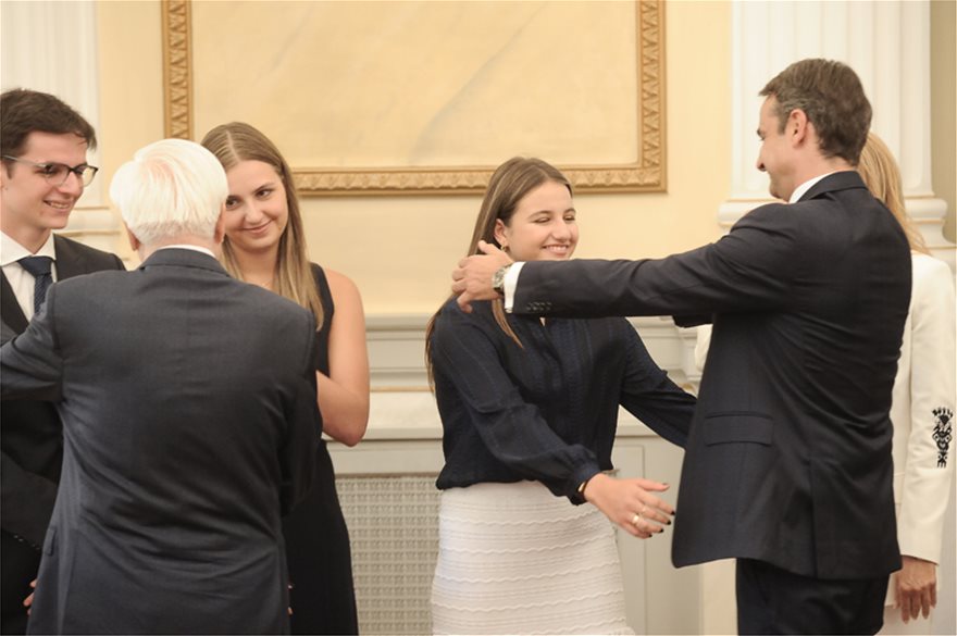 Ο Κυριάκος Μητσοτάκης πρώτα αγκάλιασε την Μαρέβα Γκραμπόφσκι, στη συνέχεια τη μικρότερη κόρη του Δάφνη και μετά μαζί τα δύο μεγαλύτερα παιδιά του, τον Κωνσταντίνο και την Σοφία.