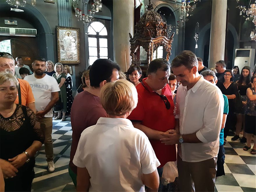 Σε κλίμα κατάνυξης, ο πρωθυπουργός προσκύνησε την εικόνα της Παναγίας, ενώ στη συνέχεια ασπάστηκε και την εικόνα των Αγίων Κωνσταντίνου και Ελένης, που έχουν αφιερώσει στον Ναό της Παναγίας οι γονείς του.