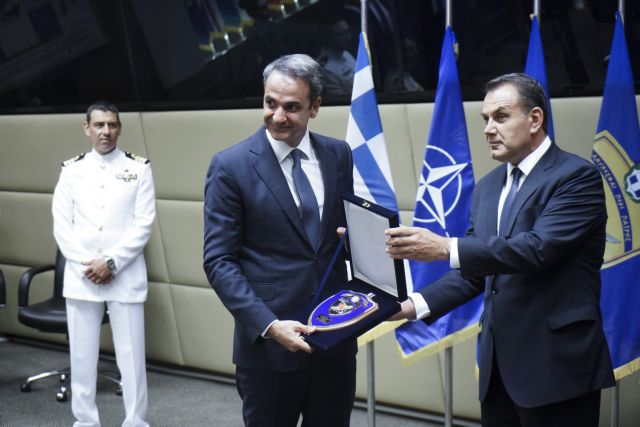 Με γεμάτα χέρια έφυγε από το υπουργείο Εθνικής Άμυνας ο πρωθυπουργός Κυριάκος Μητσοτάκης, μετά την επίσκεψη που πραγματοποίησε προκειμένου να έχει συνομιλίες με την πολιτική και στρατιωτική ηγεσία του υπουργείου.