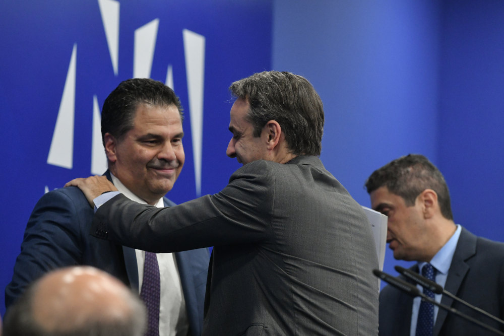 Ο Κυριάκος Μητσοτάκης χαιρέτισε θερμά και τον νέο γραμματέα της ΝΔ, Γιώργο Στεργίου.