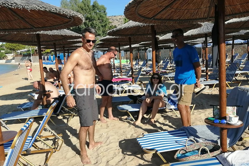 Εκεί τους «συνέλαβε» ο φακός του zarpanews.gr, στο οποίο ο κ. Μητσοτάκης δήλωσε ότι θα περάσει στην Τήνο τις διακοπές του Δεκαπενταύγουστου.