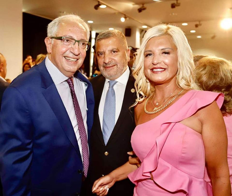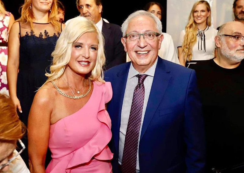 Η Μαρίνα Πατούλη, εντυπωσιακή με το ροζ φόρεμα, ποζάρει δίπλα στον νέο Δήμαρχο Αμαρουσίου.