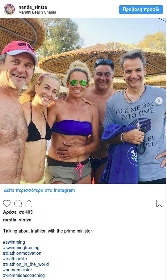 Αλλά στις διακοπές του σε παραλία της Κρήτης ο Μητσοτάκης αφήνει τη γραβάτα στην ντουλάπα.