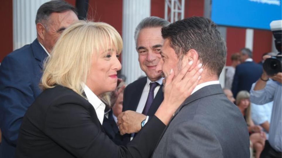 Συγκεκριμένα, η τέως, πλέον, περιφερειάρχης Αττικής, Ρένα Δούρου, όταν είδε τον γενικό γραμματέα Πολιτικής Προστασίας -και αναπληρωτή γραμματέα της ΝΔ μέχρι πριν από δύο μήνες- Νίκο Χαρδαλιά, τον αγκάλιασε και τον χάιδεψε στο μάγουλο με ένα πλατύ χαμόγελο.