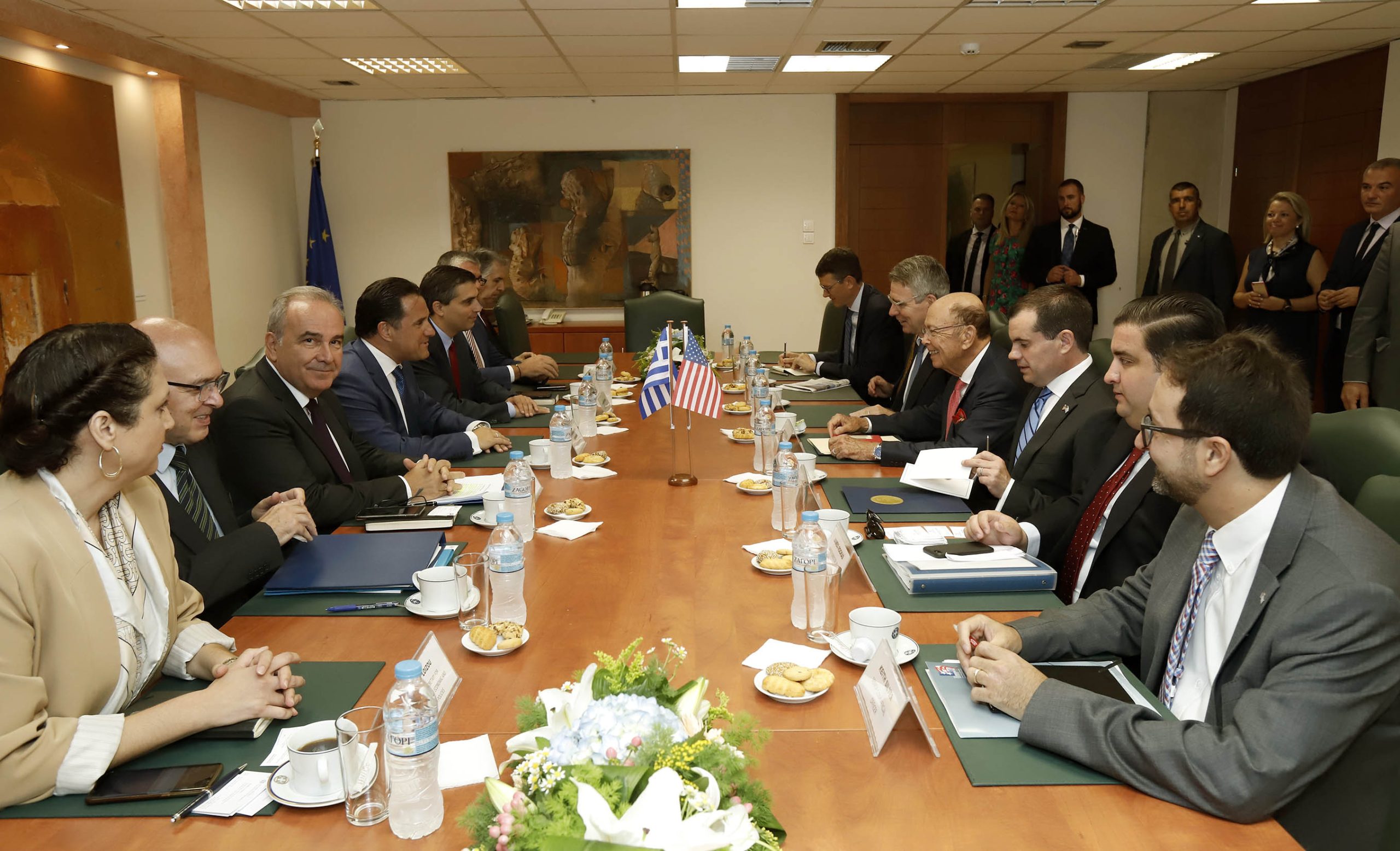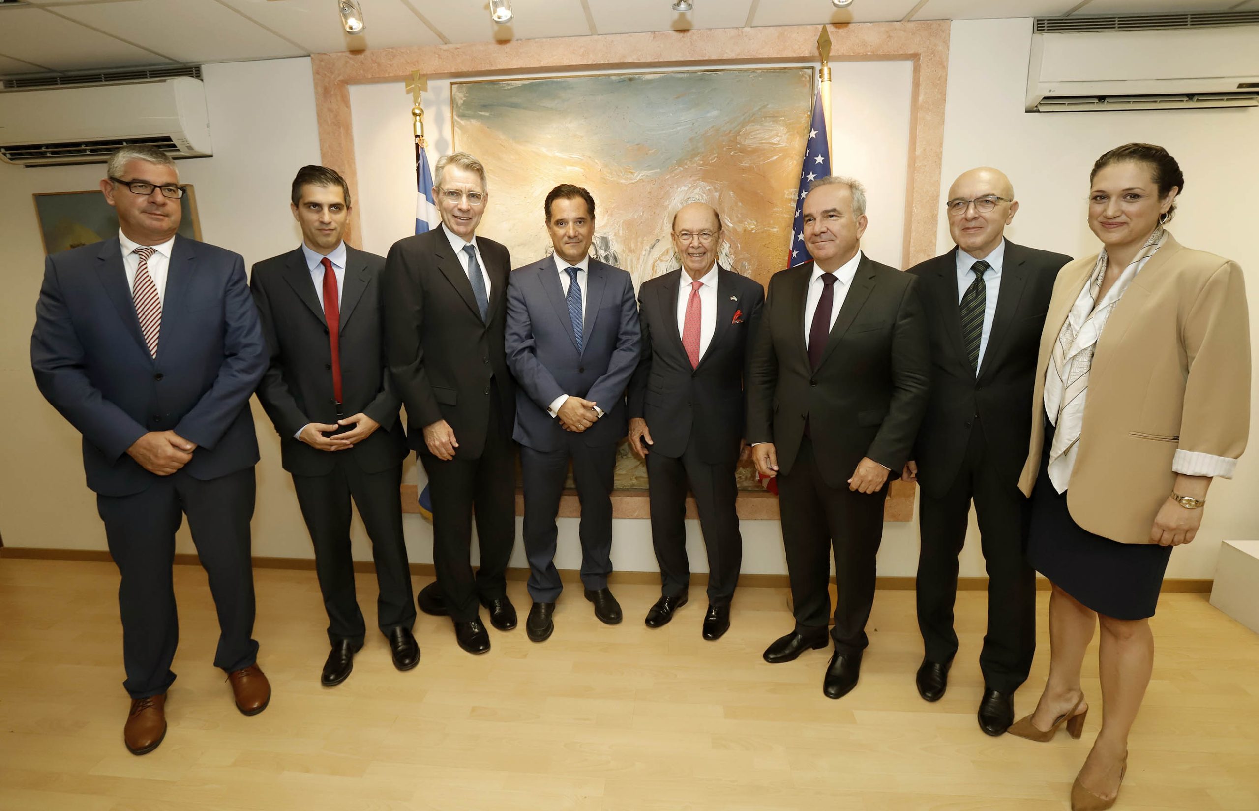Ο υπουργός Εμπορίου των ΗΠΑ Γουίλμπουρ Ρος κατά τη συνάντηση που είχε το πρωί στο υπουργείο Ανάπτυξης με τον υπουργό Άδωνι Γεωργιάδη έδειξε την προτίμηση των αμερικανικών εταιρειών για την ελληνική αγορά.