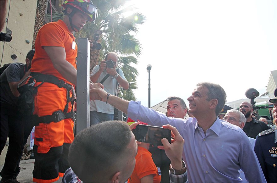 O κ. Μητσοτάκης παρακολούθησε στρατιωτικές επιδείξεις, καταρρίχησης και αναρρίχησης και ξεναγήθηκε στους χώρους του περιπτέρου.