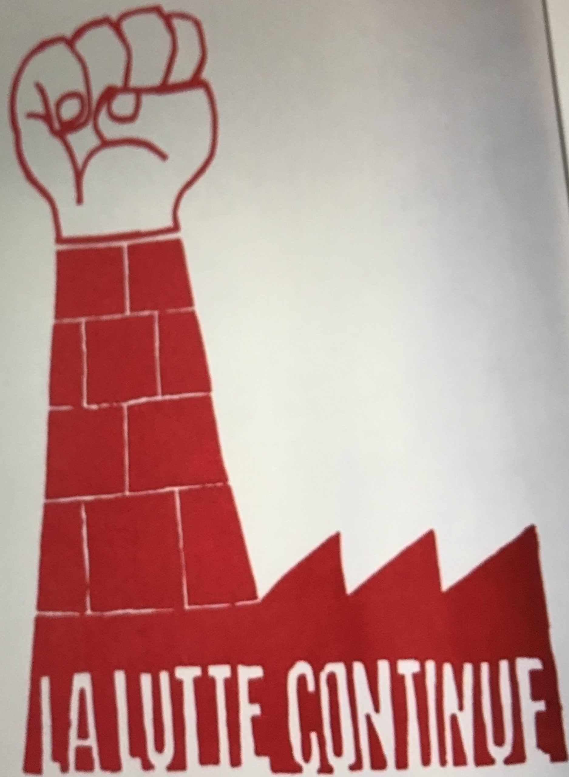 Η σοβιετικού τύπου αφίσα του ΚΙΝΑΛ πάντως ήταν εμφανώς εμπνευσμένη από τον Μάη του ‘68. Η διαφορά με εκείνη την αφίσα που είχε βγει πριν από 51 χρόνια είναι πως η υψωμένη γροθιά βρισκόταν στην αριστερή πλευρά και το σύνθημα ήταν «La lutte continue» (ο αγώνας συνεχίζεται).