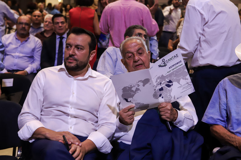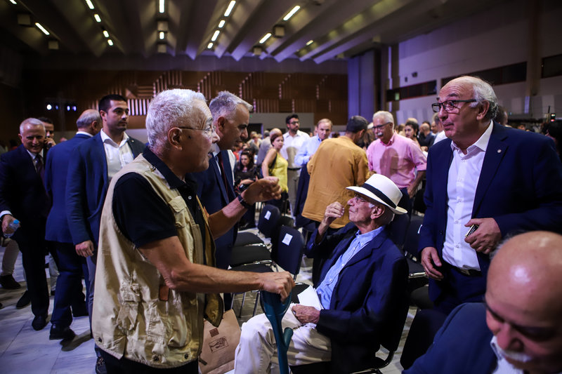 Στις πρώτες σειρές των καθισμάτων και η σύντροφός του Περιστέρα Μπαζιάνα η οποία τον συνοδεύει στη Θεσσαλονίκη και με την οποία επισκέφθηκε έκθεση Ελλήνων και Ξένων καλλιτεχνών, χθες το βράδυ.