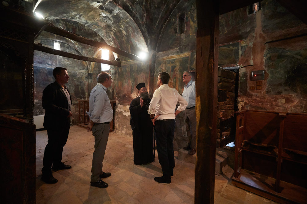Ο πρωθυπουργός αφού συνομίλησε μαζί τους ξεναγήθηκε στο ιστορικό κτήριο της Μονής.