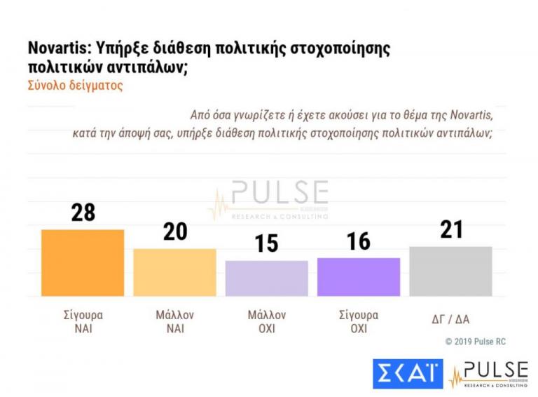 Στο ερώτημα για το αν υπήρχε διάθεση πολιτικής στοχοποίησης πολιτικών αντιπάλων, το 28% λέει σίγουρα ναι και το 20% μάλλον ναι, συνολικά δηλαδή το 48% βλέπει ότι υπήρξε ουσιαστικά πολιτική σκευωρία.