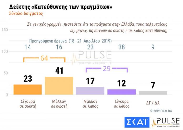 Ερωτώμενοι οι πολίτες για το πώς πηγαίνουν σε γενικές γραμμές τα πράγματα στην Ελλάδα. Αν πηγαίνουν δηλαδή σε σωστή ή λάθος κατεύθυνση: