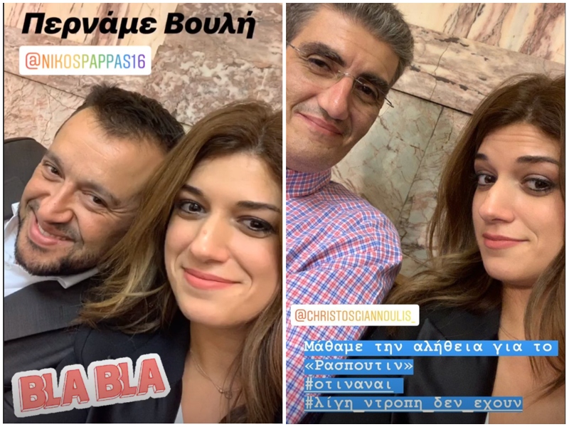 Στην πρώτη φωτογραφία που δημοσίευσε, στο πλευρό της ήταν ο τέως υπουργός του ΣΥΡΙΖΑ, Νίκος Παππάς, ενώ στην άλλη ο Χρήστος Γιαννούλης.