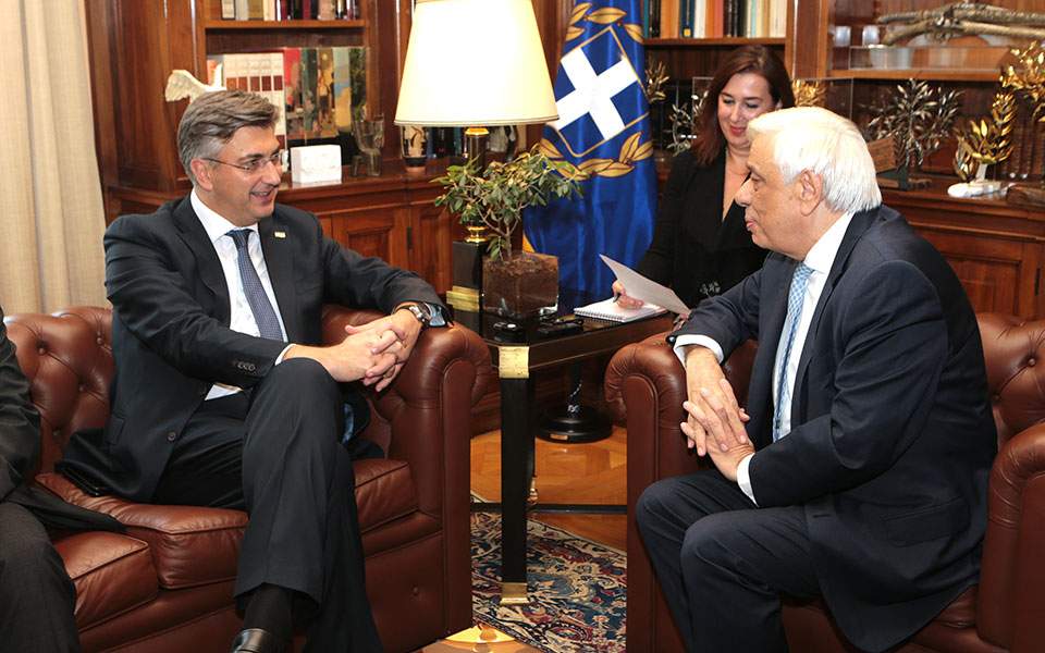Η διεύρυνση της ΕΕ και η Προεδρία της Κροατίας επί τάπητος στη συνάντηση που είχε ο ΠτΔ, Προκόπης Παυλόπουλος, με τον πρωθυπουργό της Κροατίας Α.Πλένκοβιτς στο Προεδρικό Μέγαρο.
