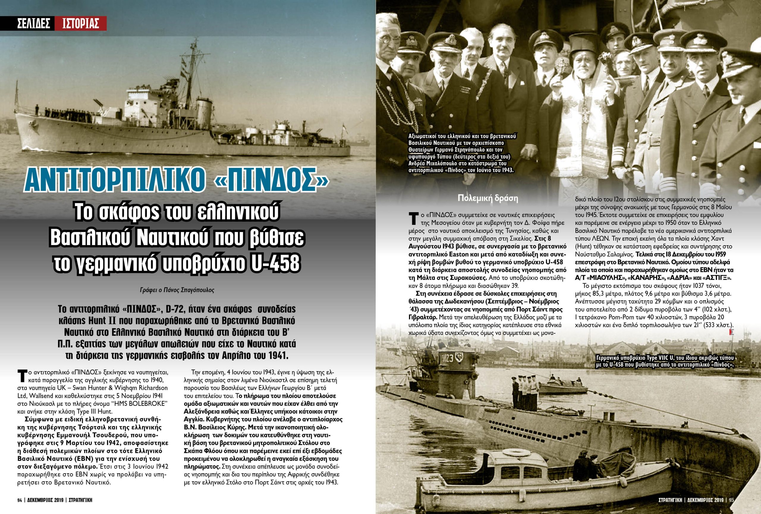 Αντιτορπιλικό «ΠΙΝΔΟΣ»: Το σκάφος του ελληνικού Βασιλικού Ναυτικού που βύθισε το γερμανικό υποβρύχιο U-458