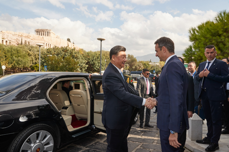 Τον Κινέζο πρόεδρο υποδέχθηκε στο εστιατόριο απέναντι από την Ακρόπολη ο πρωθυπουργός Κυριάκος Μητσοτάκης.