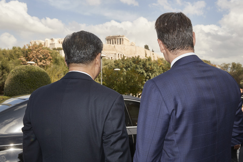 Τον Κινέζο πρόεδρο υποδέχθηκε στο εστιατόριο απέναντι από την Ακρόπολη ο πρωθυπουργός Κυριάκος Μητσοτάκης.