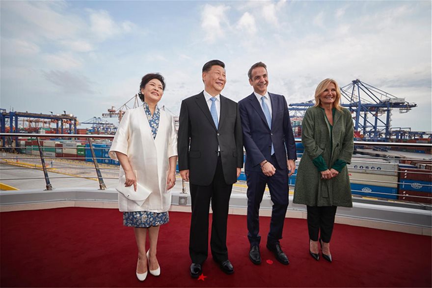 Στις εγκαταστάσεις της Cosco, παραβρέθηκε η Μαρέβα Μητσοτάκη, συνοδεύοντας τον πρωθυπουργό, κατά την κοινή επίσκεψή του με τον πρόεδρο της Κίνας, Σι Τζινπίνγκ.