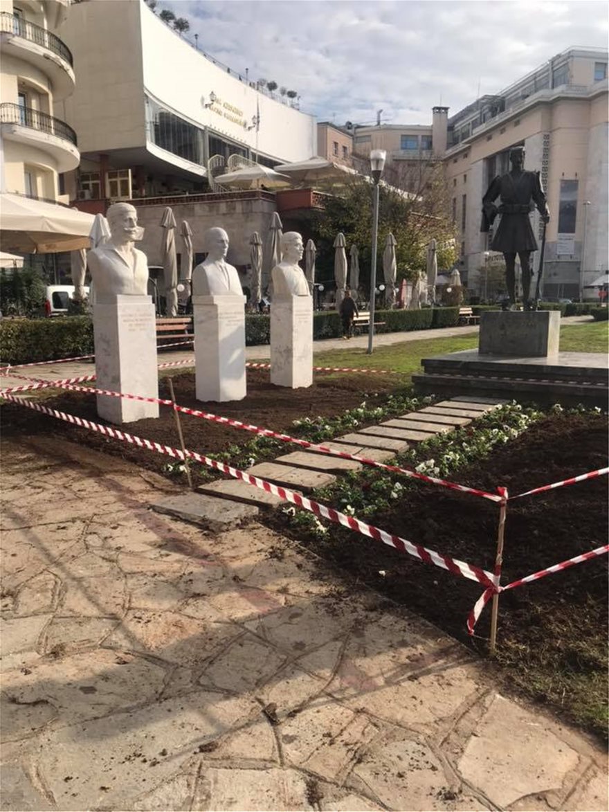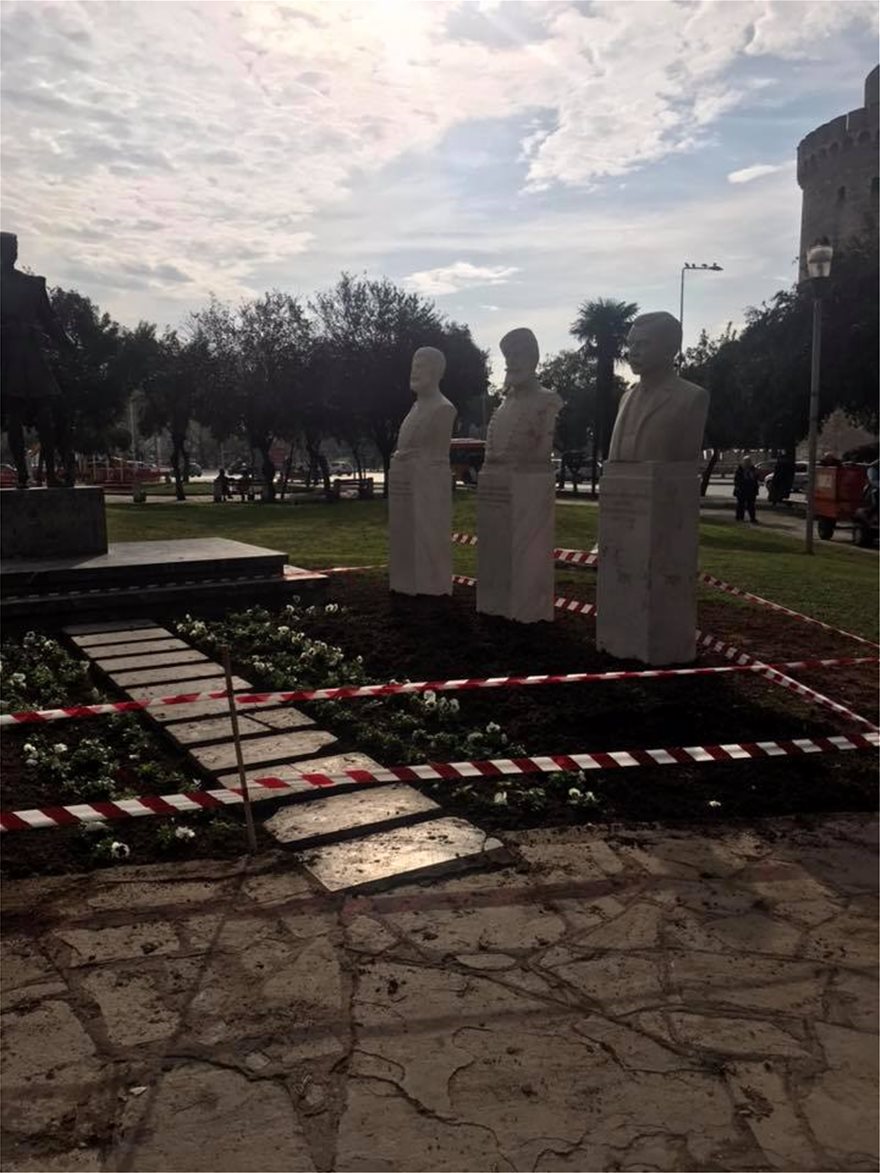 Οι προτομές τοποθετήθηκαν στον χώρο πρασίνου μεταξύ των οδών Εθνικής Αμύνης, Παύλου Μελά και Στρατηγού Τσιρογιάννη, όπως μαρτυρούν οι φωτογραφίες που αναρτήθηκαν στη σελίδα του Facebook «Φίλοι του Ιστορικού Κέντρου της Θεσσαλονίκης».