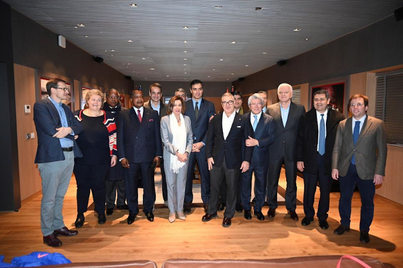 Ο Κυριάκος Μητσοτάκης μαζί με τον Πέδρο Σάντσεθ και άλλους πολιτικούς στην αίθουσα VIP του Wanda Metropolitano: