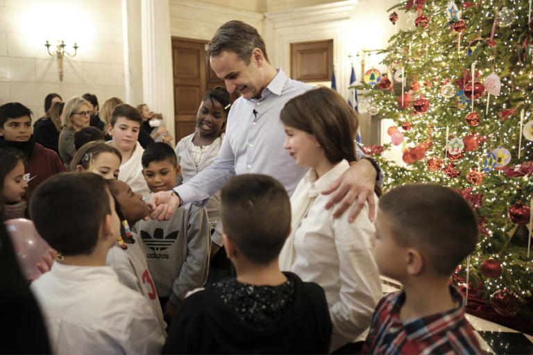 Ο Κυριάκος Μητσοτάκης στόλισε μαζί με παιδιά από την «Κιβωτό του Κόσμου» το χριστουγεννιάτικο δένδρο στο Μαξίμου (φώτο)